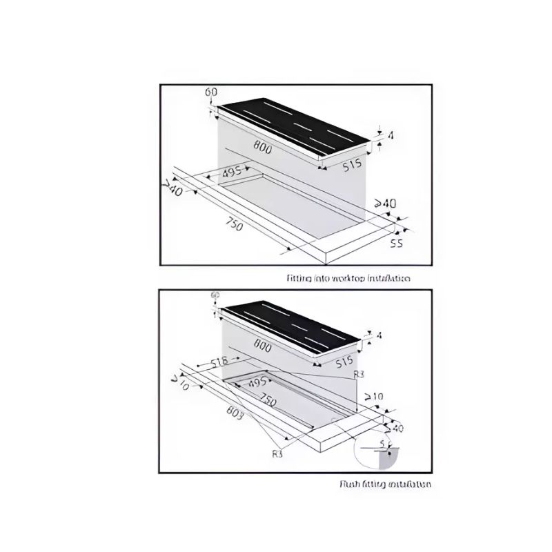 - Kích thước lắp đặt (Cao x Rộng x Sâu): 60 x 750 x 495 mm