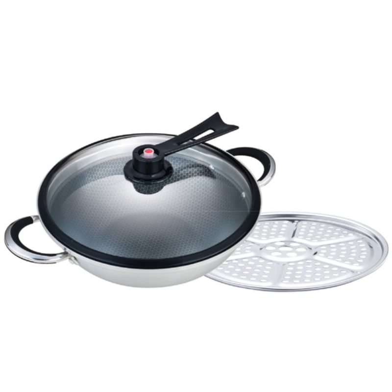 - Chống dính siêu bền, không trầy xước với dụng cụ nấu kim loại Van áp suất có thể ninh hầm những món đơn giản, giữ nhiệt lâu