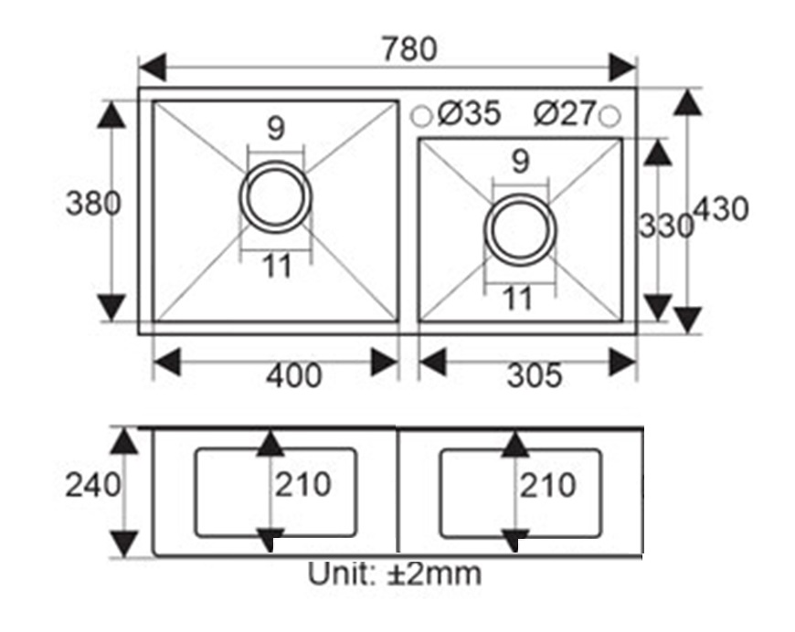 – Kiểu dáng chậu có 2 hố rửa tiện dùng khi sử dụng