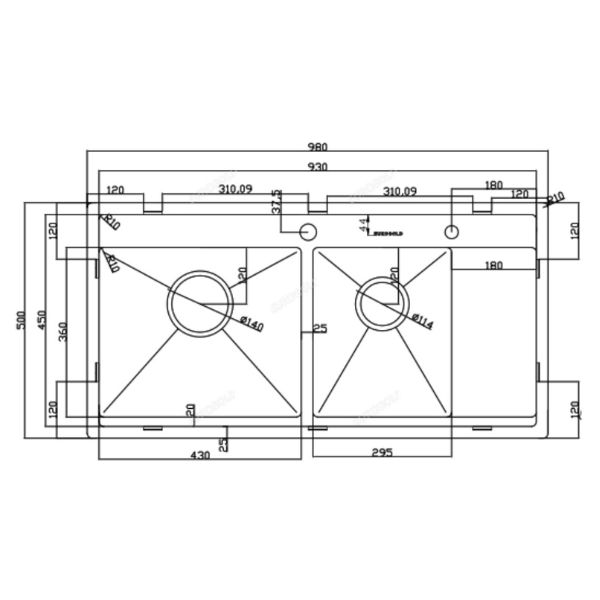 – Kích thước khoét đá: D950 * R470 (mm)