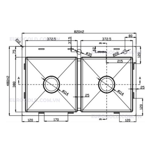 Thông số kỹ thuật của sản phẩm Chậu rửa chén bát Eurogold EUS18248: