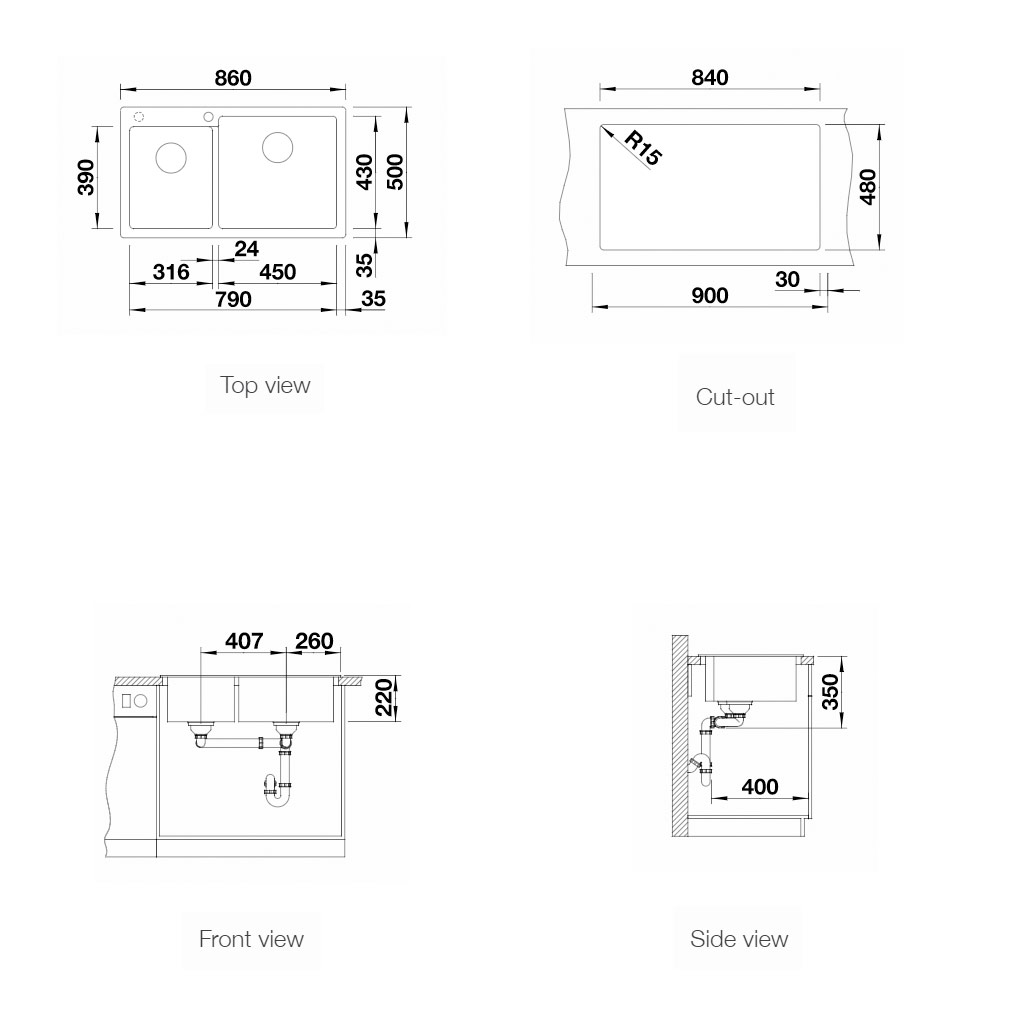 Thông số kĩ thuật của sản phẩm: Chậu Rửa Bát Blanco PLEON 9 Alu