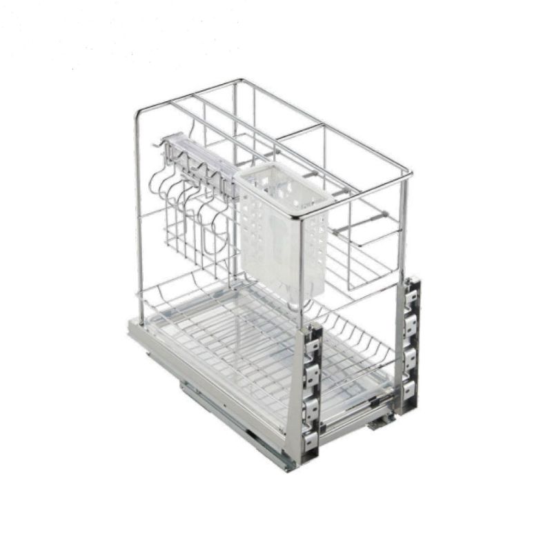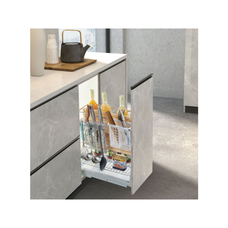 - Giá đựng thiết kế ray âm giảm chấn giúp kéo ra êm ái. Thiết bị có độ rộng cánh 200mm với chiều rộng là 286mm, chiều sâu là 470mm và cao 465mm.