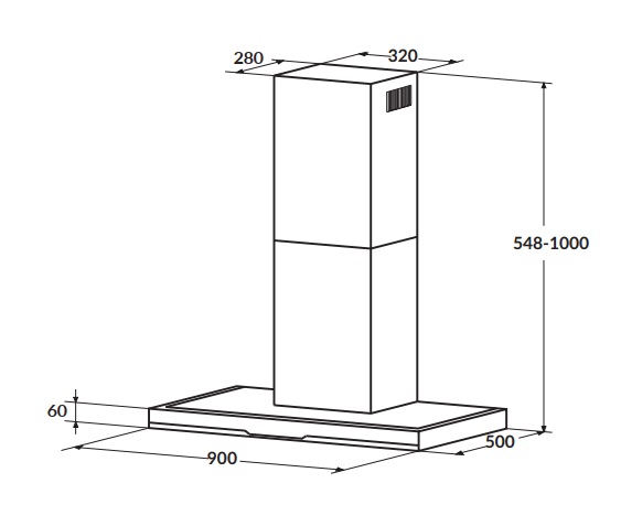– Kích thước (DxRxC):- 900x399x548/1000 mm