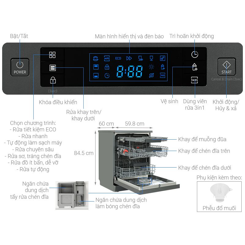 | Chương trình rửa: | Rửa tiết kiệm ECO |