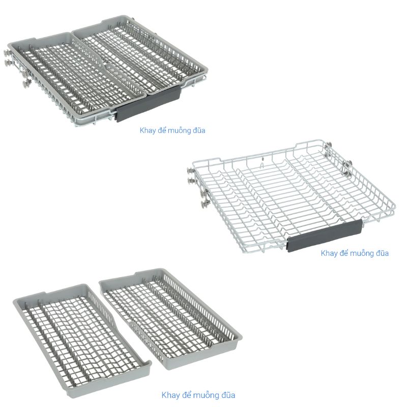 - Khay dao kéo: Có thể tháo rời và di chuyển linh hoạt, giúp bạn phân loại và rửa các vật dụng nhỏ như dao kéo, muỗng đũa được hiệu quả hơn.