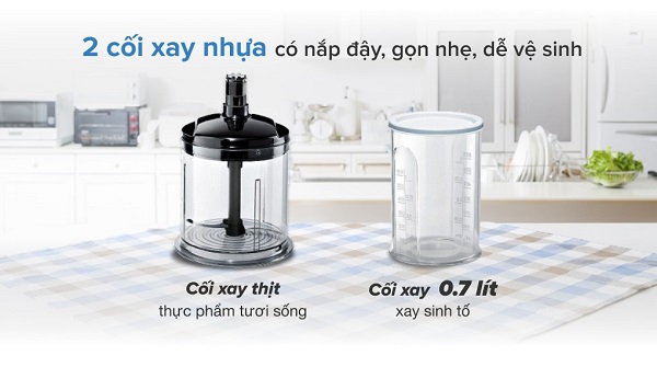 - Chức năng: Xay cháo nguội/cháo nóng, Xay gia vị, Xay hạt, Xay rau củ, Xay sinh tố, Xay súp, Xay thịt, Đánh kem, Đánh trứng