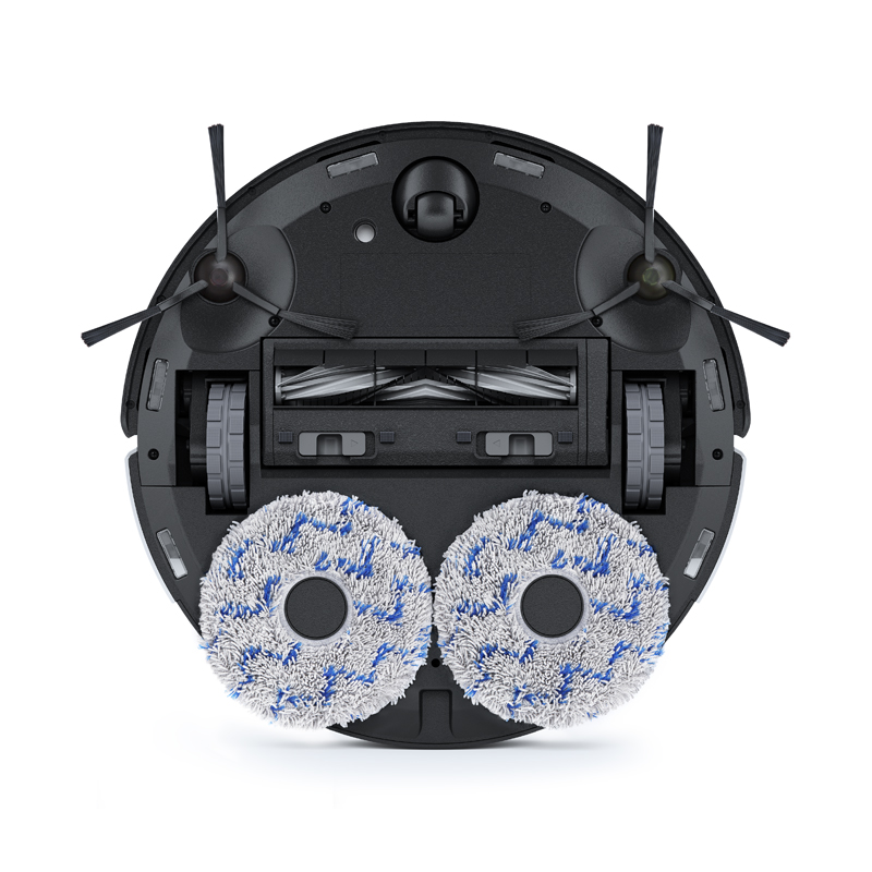 - Trọng tâm của công nghệ lau turbo nằm ở nguyên lý xoay, ép và chà sát liên tục của hai đế lau hình tròn đặt dưới gầm robot Ecovacs Deebot X1 Omni. Khi vận hành, đế khăn sẽ liên tục xoay ở tần suất 180 vòng mỗi phút, miếng khăn dày sẽ giúp tối ưu hóa lực tác động lên các vết bẩn để đánh bay mọi dấu vết còn đọng lại trên sàn nhà.