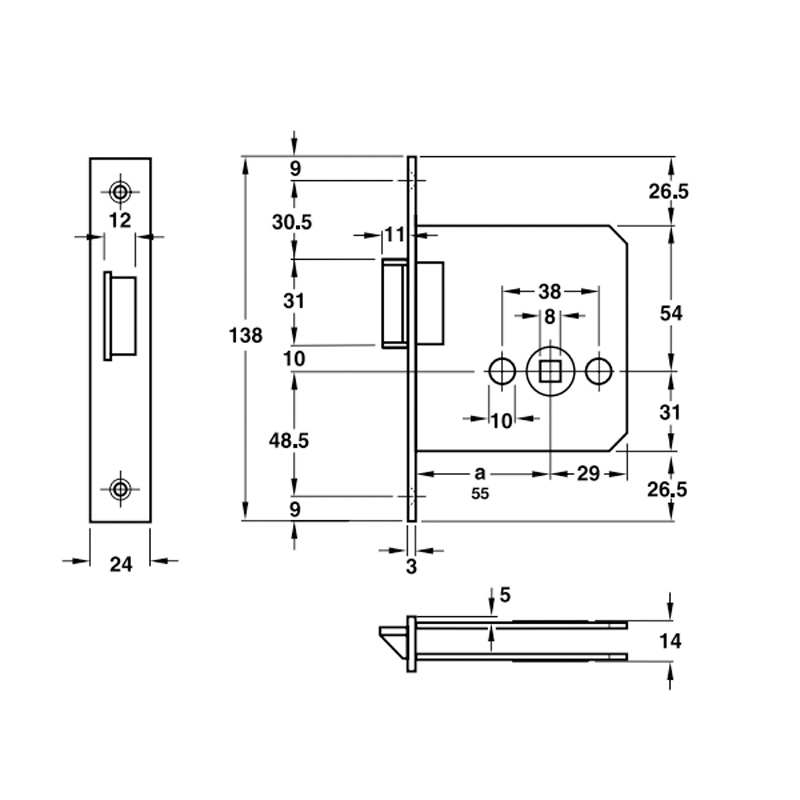 Thông số kỹ thuật của thân khóa lưỡi gà Hafele 911.23.841