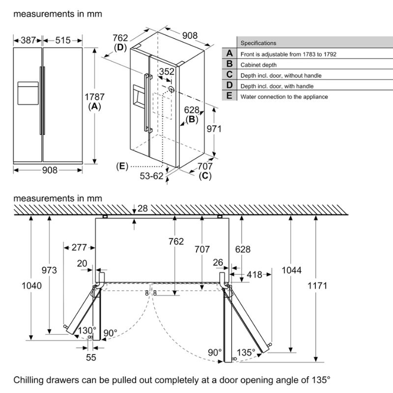 Tủ lạnh 2 cánh side by side 531 lít Bosch KAG93AIEP