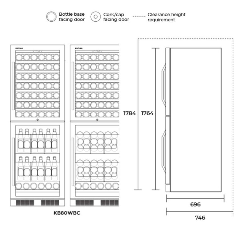- Trữ Lượng Lớn: Tủ KB80WBC có khả năng chứa tới 84 chai rượu (dung tích 0,75 lít mỗi chai) và 96 lon bia (dung tích 330 ml). Với sức chứa rộng rãi như vậy, bạn có thể thoải mái lựa chọn và bảo quản các loại đồ uống yêu thích.