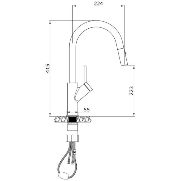 - Đầu vòi kéo dây mở rộng phạm vi làm việc.