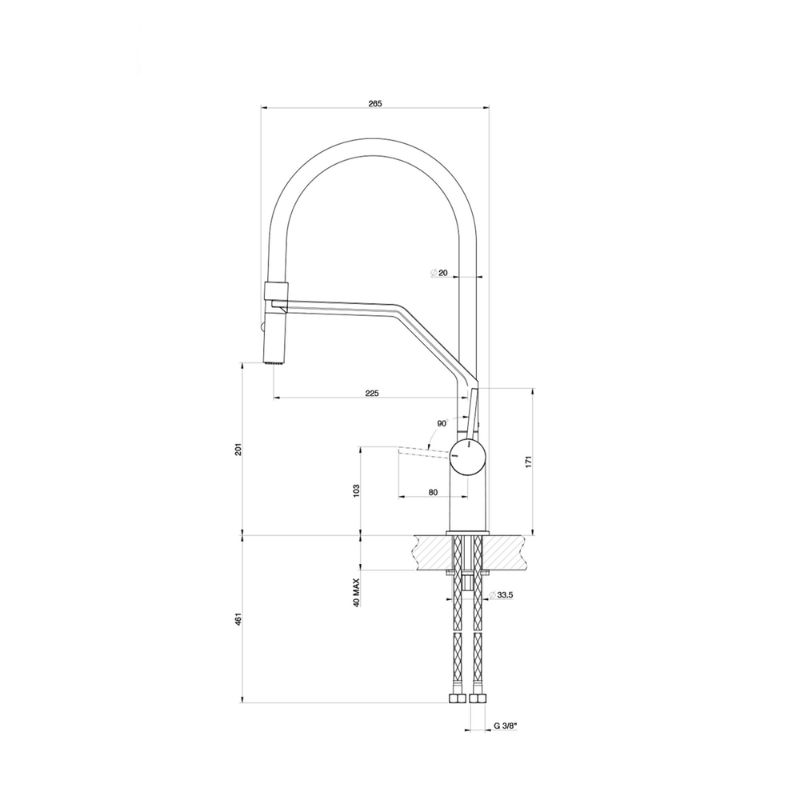 - Chiều cao từ mặt đá đến đầu vòi: 201 mm