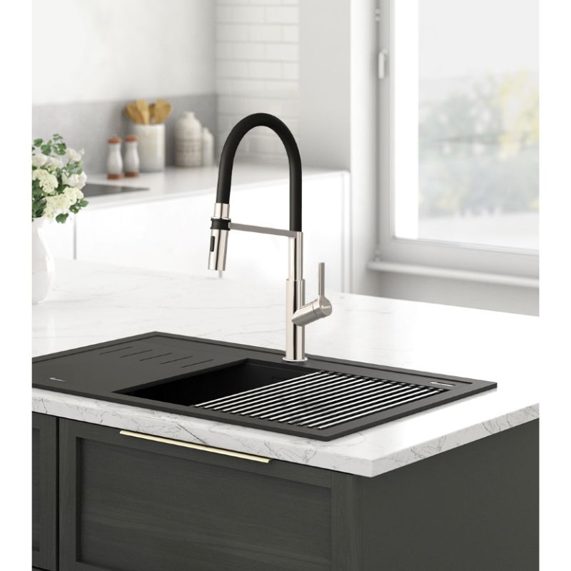 - Chức năng: Nóng lạnh + Thân vòi mềm + Đầu vòi khớp xoay + 2 chức năng Sprayer (Dòng chảy phun mưa, tạo bọt khí) + Xoay 360 độ